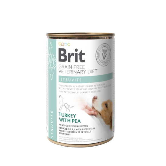 Ще один приклад - Brit VD Struvite для собак. У разі інфекції сечовивідних шляхів він буде використовуватися як профілактика струвітного утворення лише як частина лікування під час лікування інфекції, а у разі хронічної рецидивуючої струвітної сечокам'яної хвороби може бути використаний для довгострокового лікування.
